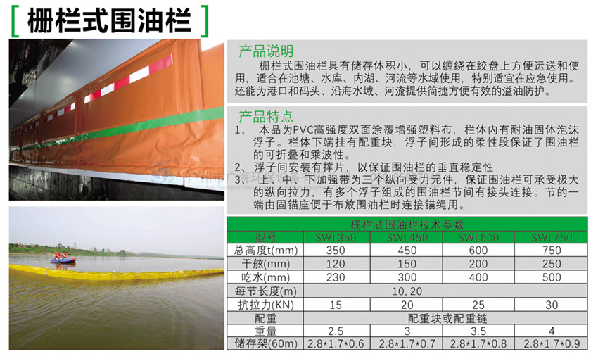 栅栏式围油栏